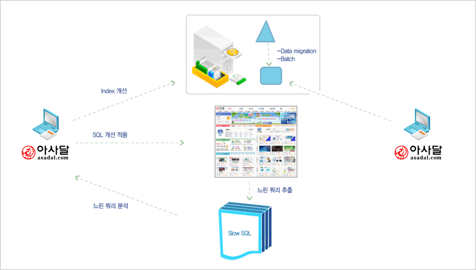 index 개선 : 도메인, 키 조건, 분포도 조사, 순서 결정 등 다양한 조건 조사 후 Index 전략을 수립하고 개선 사항을 데이터베이스에 적용합니다. |